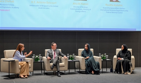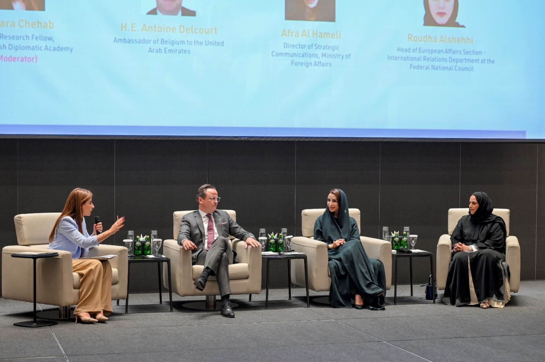 وأدارت الدكتورة سارة شهاب، باحث أول في أكاديمية أنور قرقاش الدبلوماسية، الجلسة الحوارية بمشاركة مجموعة من المتحدثين البارزين، بمن فيهم سعادة أنطوان ديلكور، سفير بلجيكا لدى دولة الإمارات العربية المتحدة؛ والسيدة عفراء الهاملي، مديرة إدارة الاتصال الاستراتيجي بوزارة الخارجية الإماراتية؛ وروضة الشحي، رئيس قسم الشؤون الأوروبية في إدارة العلاقات الخارجية بالمجلس الوطني الاتحادي.